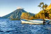 Excursion en bateau sur le lac Atitlan. Considéré comme un des plus beaux lacs au monde, le lac Atitlan est né d’une éruption volcanique qui a eu lieu il y a plus de 80 000 ans. Il est bordé par les volcans San Pedro, Toliman et Atitlan ainsi que par de nombreuses montagnes. Le lac, d’une superficie de 128 km², est profond de plus de 600 mètres par endroits et est à une altitude de 1500 mètres.