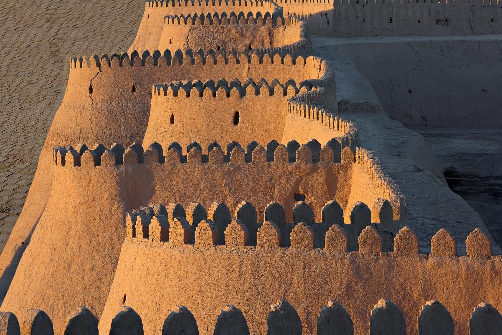 Dressant derrière ses murailles, coupoles et minarets, Khiva, cité vieille de vingt siècles et ancienne capitale du royaume de Khorezm, a des couleurs de sable et de turquoise.